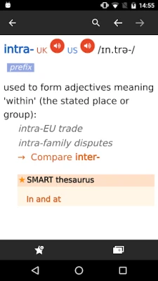 Every dictionary entry has thesaurus sections that show related words, phrases and synonyms for each meaning, helping you to expand your English knowledge.