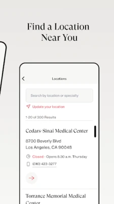 Get directions to the nearest Cedars-Sinai urgent care, hospital or medical office. Looking for a bite to eat at the hospital? The app can help with that, too.