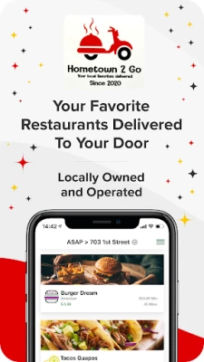 Hometown 2 Go Inc food and drink delivery app features a broad selection of local restaurants.