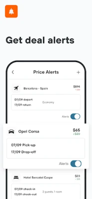 Find mobile-only rates and exclusive deals on the app. Set Price Alerts to know when prices drop on the flights, cars and hotels you’re interested in.