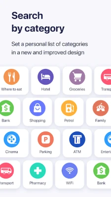 – Search through different categories e.g. restaurants, cafes, tourist attractions, hotels, ATMs and public transport (metro, bus…)