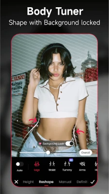 - Body Shape: Shape your body to be curvier, slimmer, more muscular, or taller, with background locked.