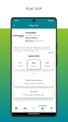 • Create and save digital play slips for lotto games