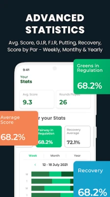 • Advanced Statistics – Average Score, Greens in Regulation, Fairways in Regulation, Putting Average, Score by Par, and Recovery statistics all in one place