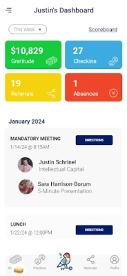 "Winners keep score" is our motto, and this app helps members track their networking stats and share with the private, professional services group based in Richmond, VA.