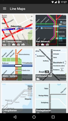 - Line maps for metro, commuter rail, Lidingöbanan, Roslagsbanan, Saltsjöbanan, Spårväg city, Nockebybanan och Tvärbanan