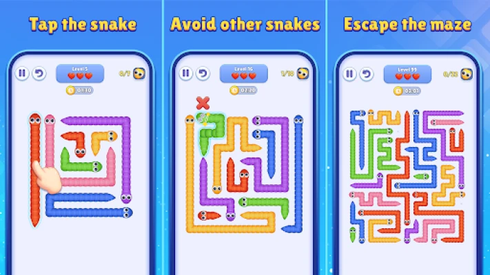 🧩 Polished design and animation, smooth snake movement, and relaxing sound effects that make every puzzle feel satisfying and alive as they wiggle and slither their way out of the maze jam.