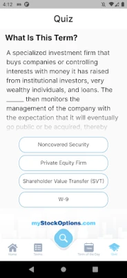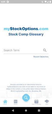 The Stock Compensation Glossary is a free interactive reference guide that defines almost 1,000 terms in the areas of equity compensation and executive compensation, along with the related taxation, accounting, and securities law. The stock comp glossary app is based on the popular glossary on the website myStockOptions. Clearly written in plain English with other fun features, such as a quiz and term-of-the-day, the glossary defines terms relating to all types of stock comp, including stock options, restricted stock, RSUs, and ESPPS.