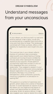 Temenos Dream is more than just a dream diary - it acts as your insightful companion, unlocking the mysteries hidden in your dreams. Our proprietary dream analysis algorithm combines widely recognized dream dictionaries, and spiritual frameworks to offer unique perspectives and sophisticated interpretations, effectively serving as your personal dream advisor with its robust AI interpreter.
