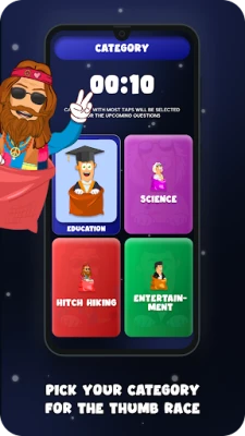 Thumb Race: Get ready to race against the clock and your friends in the exhilarating Thumb Race. Tap on your chosen category to make it jump faster. The category with the most taps wins, and the question for that round will be from the winning category. It's a thrilling blend of speed and strategy!